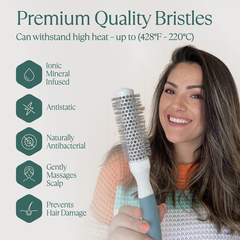 - IT'S ALL IN THE BRISTLES; Don’t be fooled our bristles are a whole lot more than what meets the eye, Not only are they antistatic, ionic mineral infused for healthier hair and maximum shine, but they’re also tough enough to withstand high heat, and the benefits don’t stop there, Polished bristles gently massage the scalp and prevent against damage and breakage, while wavy bristles cover maximum area for styling with less effort