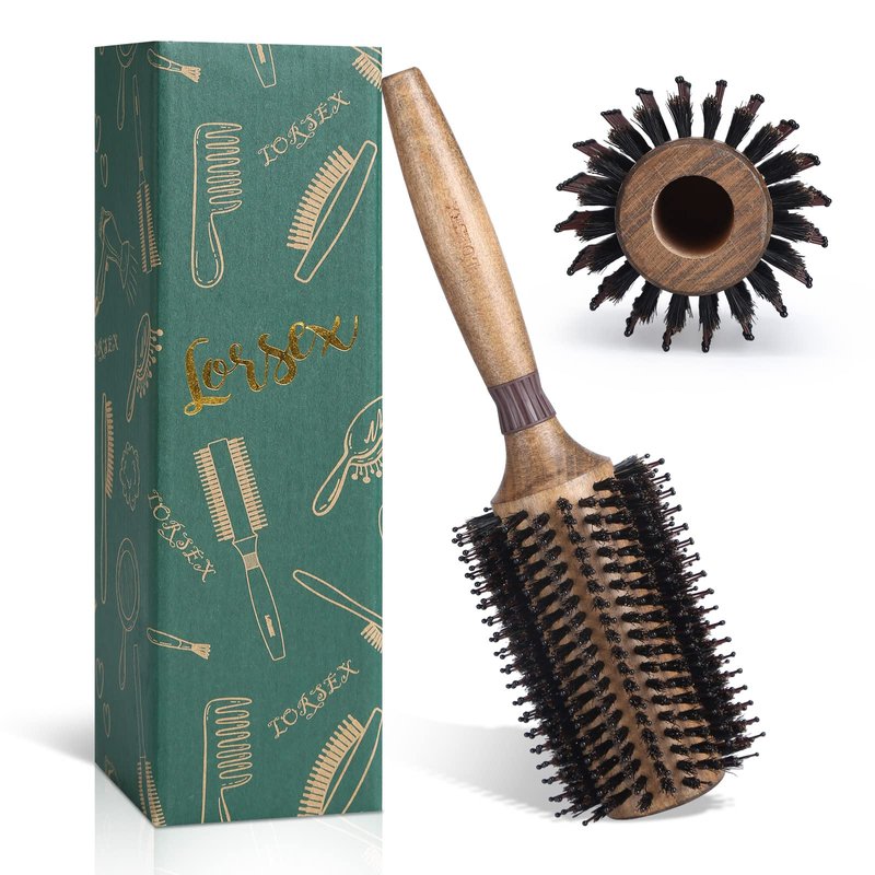 Round Brush for Blow Drying, LORSEX Boar Bristle Hair brush for Women Men, Round Hairbrush for Add Shine/Volume, Minimize Damage (2.8 Inch)