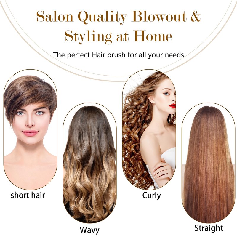 The unique barrel design ensures even heat dispersion, cutting down your styling time significantly. Crafted with a non-slip handle, this brush provides a secure and comfortable grip, making your hair care routine a breeze. Whether you have tight curls or sleek straight hair, our versatile brush is available in three sizes to cater to all hair types and styling needs.