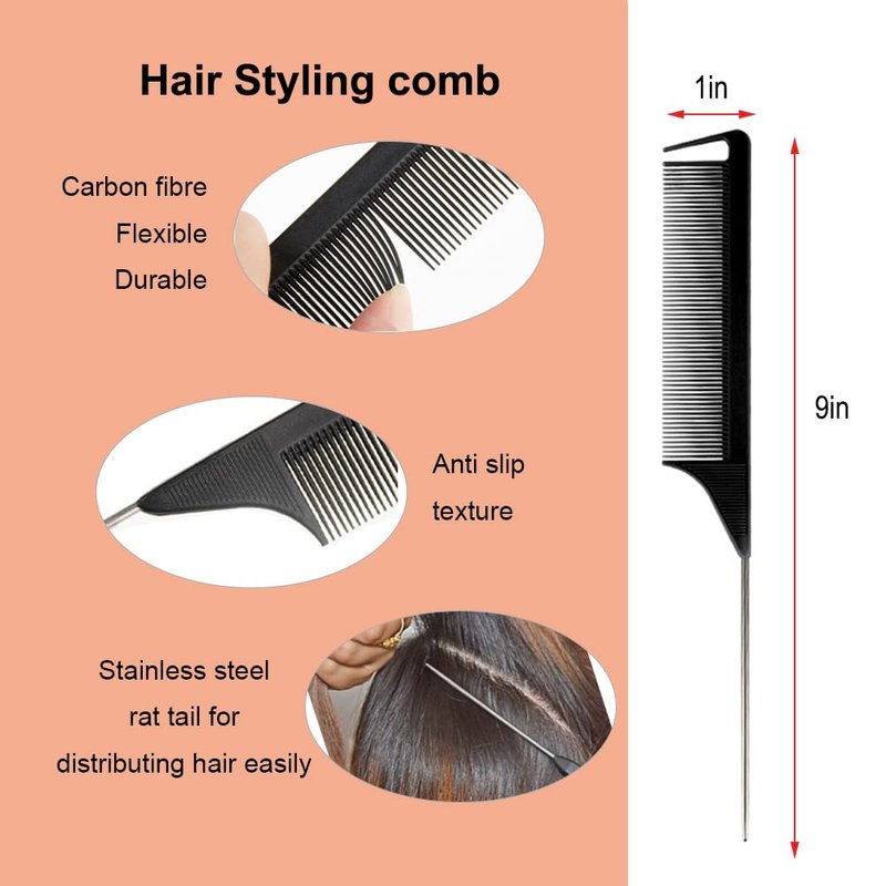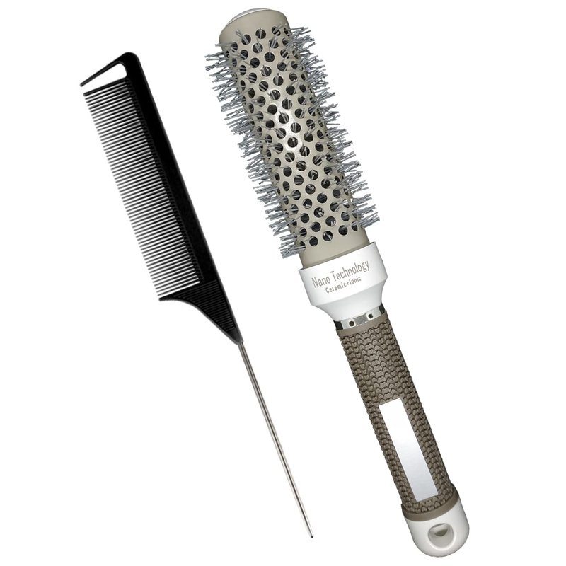 - The round brush for women is consist of Nylon teeth, round aluminium barrel and rubber handle.Come with a Hair Styling Comb,made of carbon fiber,heat resistant and the handle is made from stainless steel,which won’t hurt scalp,distribute hair easily,anti-static.