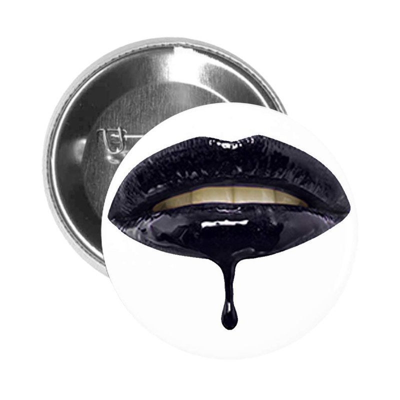 Round Pinback Button Brooch Shiny Dripping Lip Gloss ON Lips Black White (1.5" Inch)