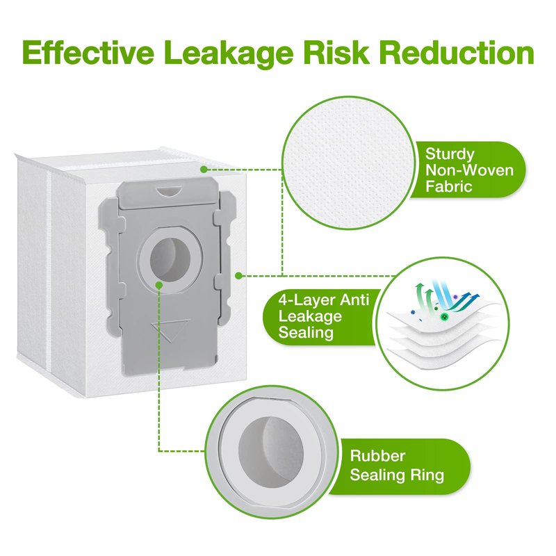 - [Perfect Fit]- 12 PCS vacuum bags compatible with all cleaning base and iRobot roomba i & s & j series i3 i3 Plus i3 + ( 3550 ), i4 i4 Plus i4 + ( 4552 ), i6 i6 Plus i6 + ( 6550 ), i7 i7 Plus i7 + ( 7550 ), j7 j7 Plus j7 + ( 7550 ), i8 i8 Plus i8 + ( 8550 ) s9 s9 Plus s9 + ( 9550 ) vacuum bags. The perfect replacement for roomba bags.