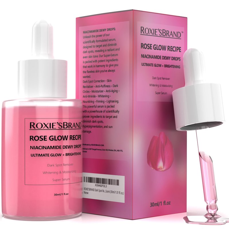 Dark Spot Correction, Skin Revitalizer, Anti-Puffiness, Dark Circles, Moisturizer, Anti-Wrinkle, Anti-Aging, Whitening, Firming, Nourishing, Lightening. This powerful serum is packed with a powerhouse of scientifically proven ingredients to target and diminish dark spots, hyperpigmentation, and sun damage. Here's why ROXIE'S BRAND Serum is a cut above the rest: Synergistic Action: Our unique blend of 10% Niacinamide, 4% Tranexamic Acid, and 2% Arbutin works together to effectively lighten and fade dark spots, while 2% Vitamin C brightens and evens skin tone. Deep Hydration: Hyaluronic Acid plumps and hydrates skin, leaving it supple and radiant. Enhanced Benefits: Vitamin B12 and Ceramides further nourish and strengthen your skin barrier, promoting a healthy, youthful glow. Made For All Skin Types: Rose Scented, Cruelty-Free, Paraben Free.