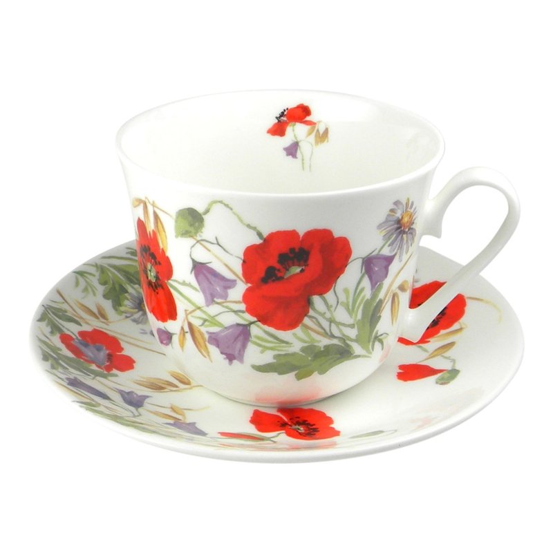 - POPPY MEADOW TEACUP AND SAUCER: A charming jumbo breakfast cup and saucer set with beautiful flowers is a special way to enjoy your favorite cup of coffee or tea