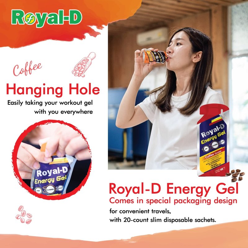 - PORTABLE PACKAGE - Royal-D Energy Gels comes in special packaging design for convenient travels, with 20-count slim disposable sachets and hanging hole easily taking your workout gel with you everywhere, get ready for energy gel every time. Get Royal-D as running snacks, running energy, running fuel for athletes, running gel, energy chews for runners, energy gels running, sports gel.