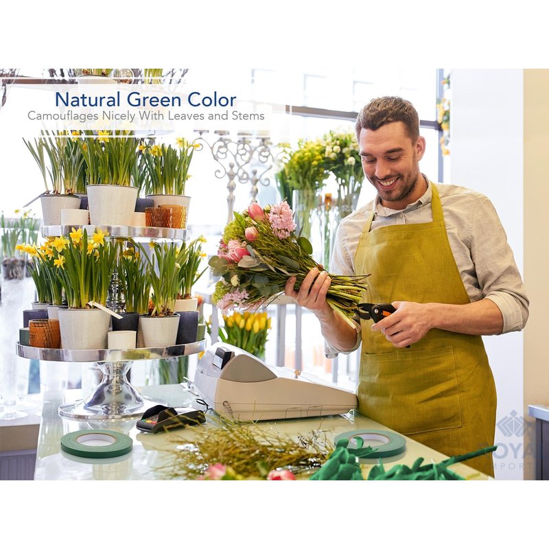 - Best Material - Each roll of Royal Imports floral tape is made of best materials with the toughest of cloth fibers woven into it, to provide a durable yet easy to use duct-tape-like encounter for your floral needs. The color is a dark green which will camouflage very well with natural leaves.