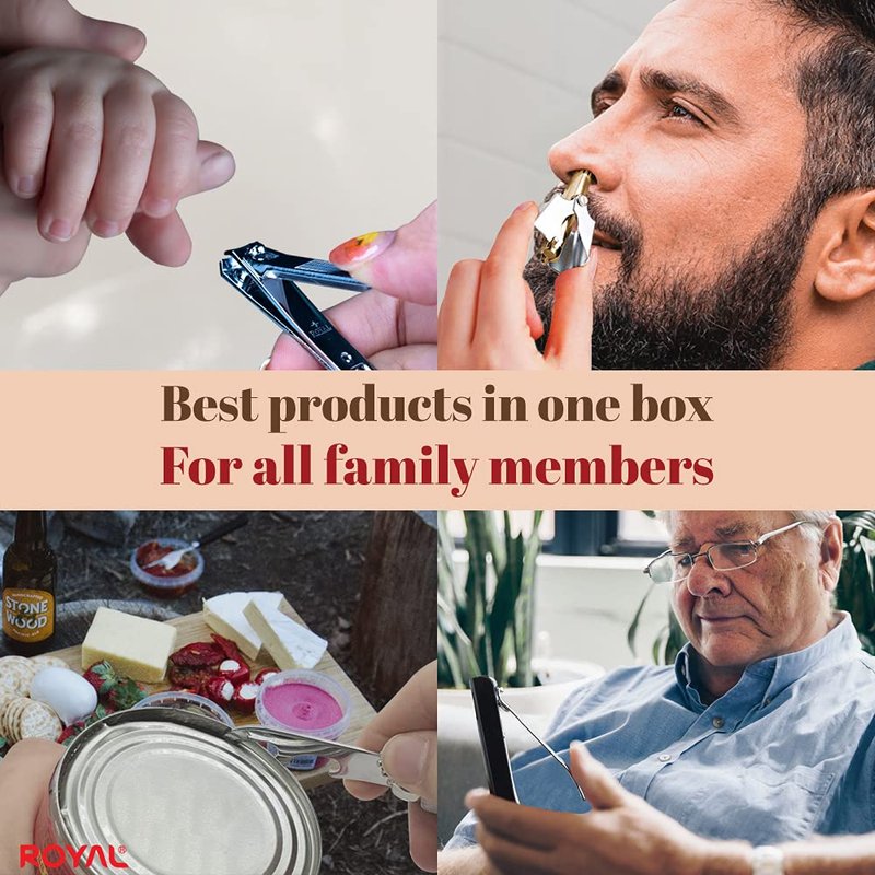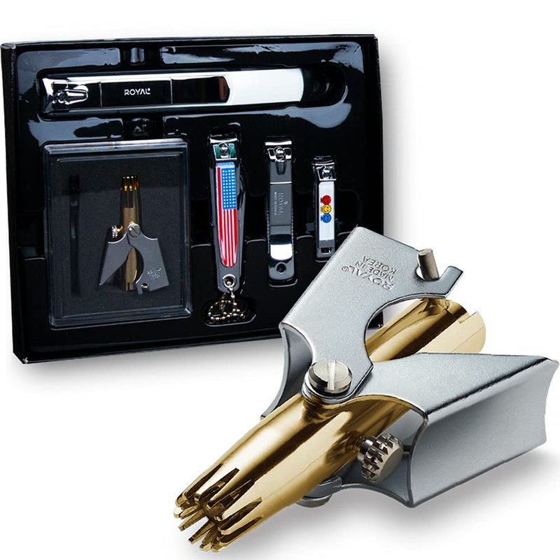 ROYAL [Made in Korea] NO Battery,5 Pcs Nose Hair Trimmer Set, Value Pack,(Nose Hair Trimmer with 4 Nail Clippers) The Best Gift for Family, (Gold&Black)