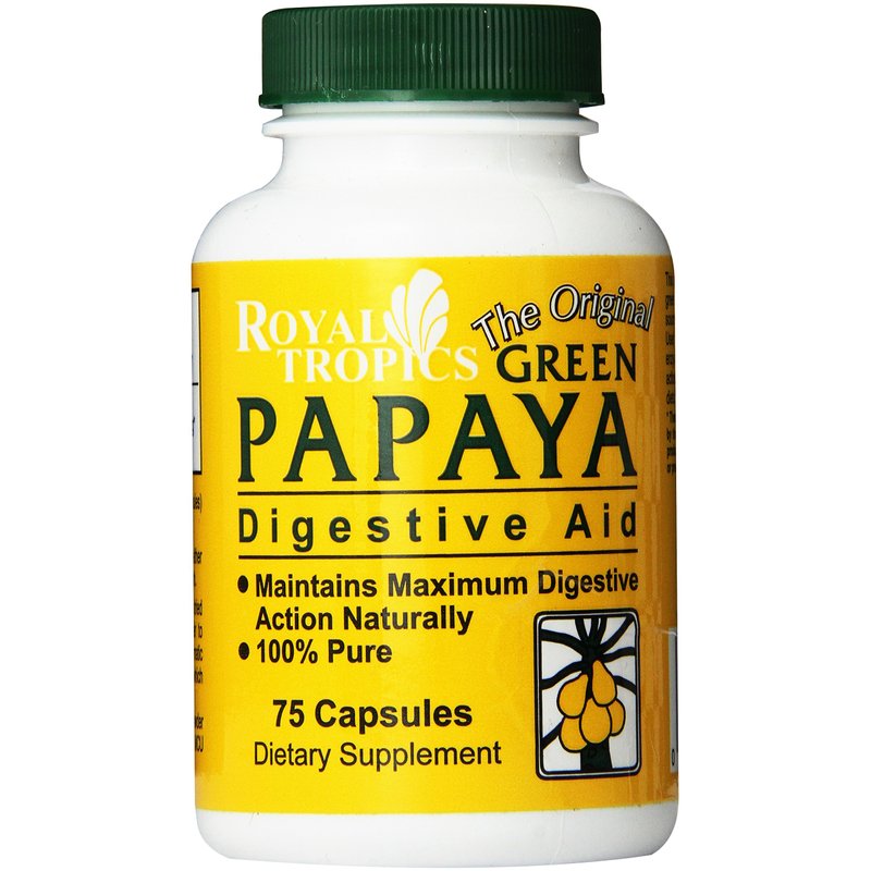 Royal Tropics The Original Green Papaya Digestive Aid Capsules, 75 Count