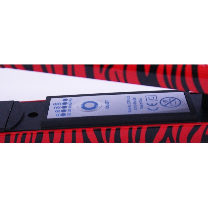 RoyalCraft Dual Volt (110V/220V) Ceramic Professional Immediate Heat Up Hair Straightener Iron in Red & Black Zebra Print.