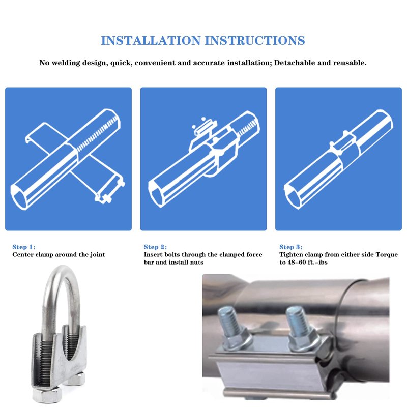 - 💠FUNCTION: Compress a flex pipe, reattach a diesel/gas exhaust tip, or even use on a fence gate; Superior seal and high clamp loads prevent exhuast gas and noise from leaking; tight but no damaging distortion to Pipe ends or Flex Hose.