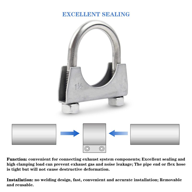 - 💠SIZE:1.5'' inside diameter, fits for 1.5'' OD pipe, 1 Piece of 100% Brand New U-Bolt Muffler/Exhaust Clamp.