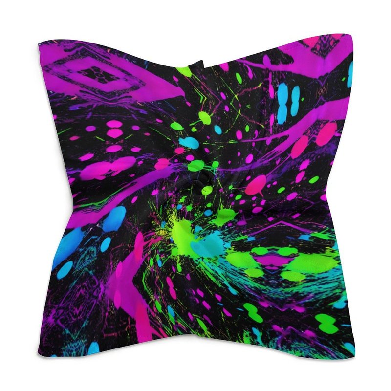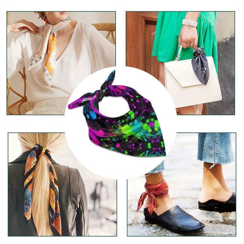 RQZWDQ Glow in Dark Splatter Neon Bandana for Men Women Square Headscarf Handkerchief Silk Neck Scarf Headbands Headwrap Wristband Head Hair Wraps for Adult