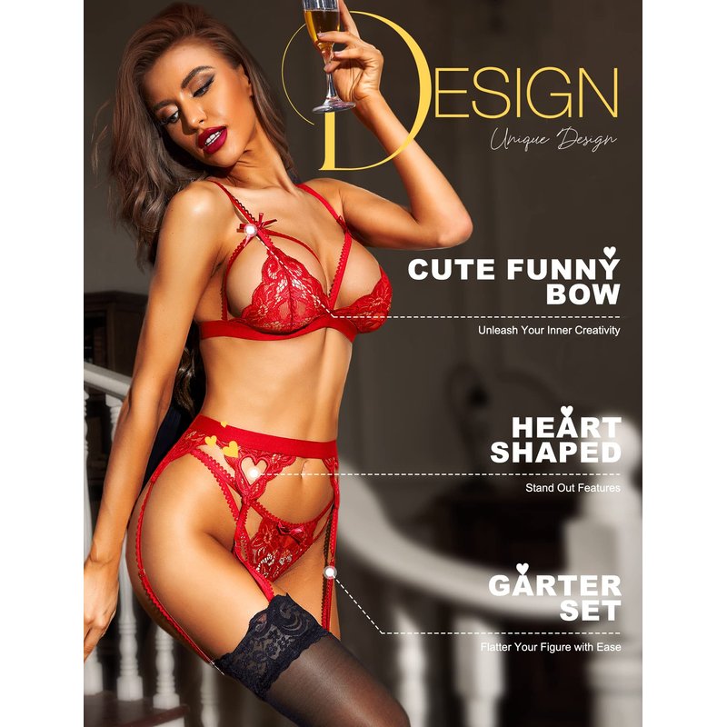 - Style: Delight your partner with this three-piece lingerie set. Garter belt set, garter lingerie, three-piece bodysuit, women in lingerie, lace garter set, lingerie for women, bra & panty sets.