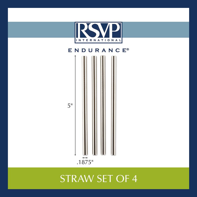 RSVP International Endurance Reusable Straws, Set of 4 - Stainless Steel, 5" | Fits Most Tumblers | Reusable | Scratch & Rust Resistance | Unbendable & Unbreakable | Dishwasher safe