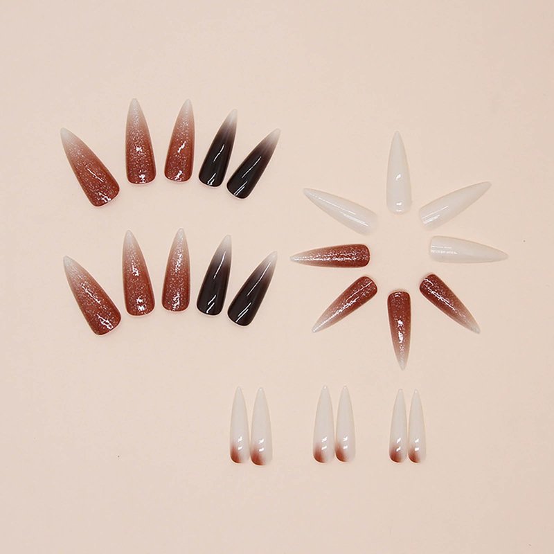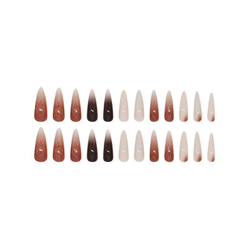 RTKHFZE Almond Shape Press on Nails Long Stiletto Press On False Nails Brown Glitter Fake Nails with Gradient Designs Full Cover Acrylic Nails Stick on Nails for Women Manicure