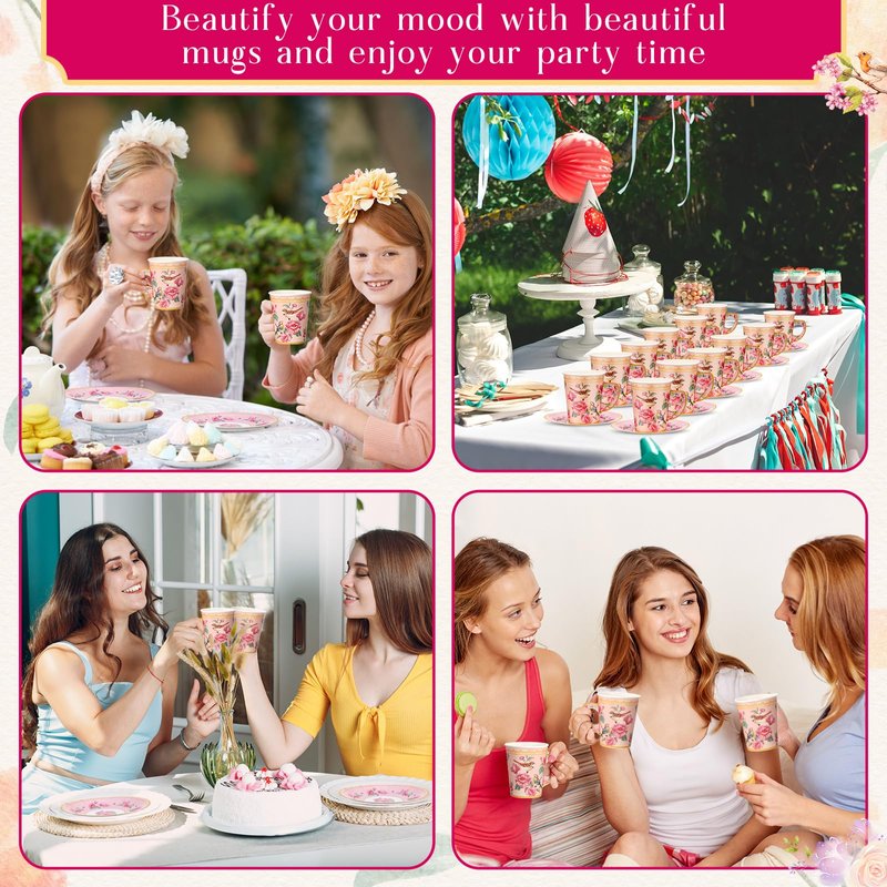 - Disposable and Easy Clean up: the tea party cups and saucers are disposable, ensuring cleanliness and hygiene; This feature tremendously reduces clean up time , leaving with no mess and no stress