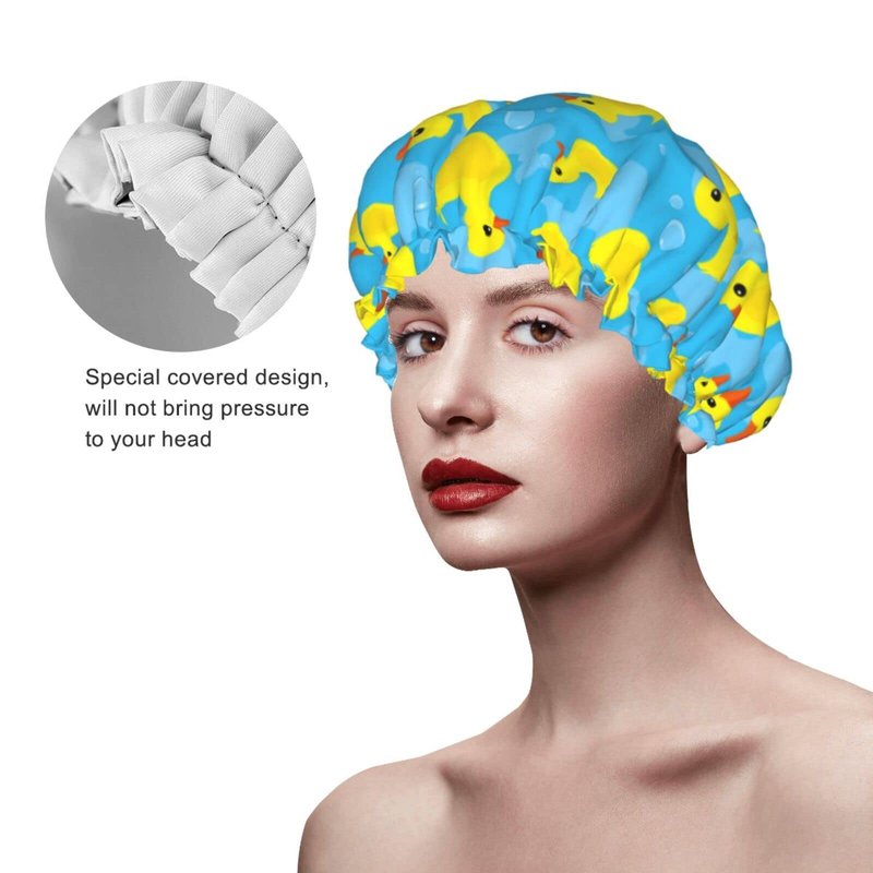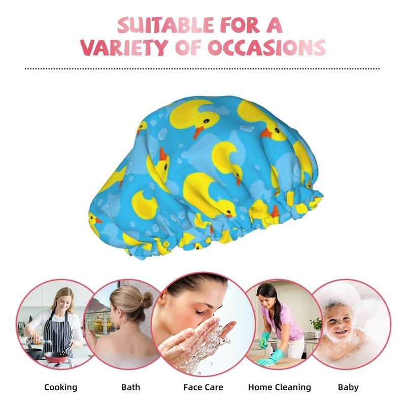 Rubber Duck Shower Cap for Women Reusable Double Layers Waterproof Shower Hair Protector PEVA Lined Shower Hat for All Long Hair Lengths, Stretchy Adjustable Shower Caps