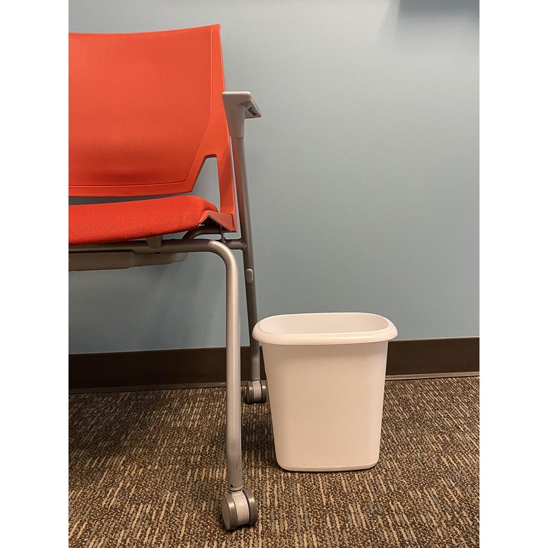 - 6 Qt, white, plastic vanity wastebasket, 10x 7 x 11