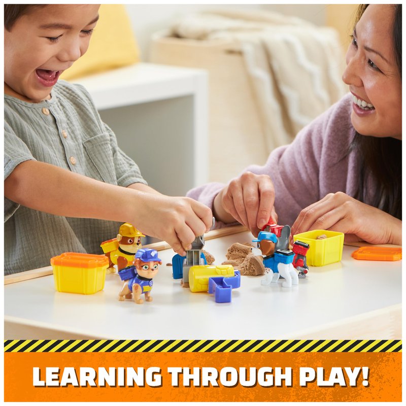 Rubble & Crew, Rubble and Mix Action Figures Set, with 3 oz of Kinetic Build-It Sand and 2 Hand Held Building Toys, Kids Toys for Ages 3 and up