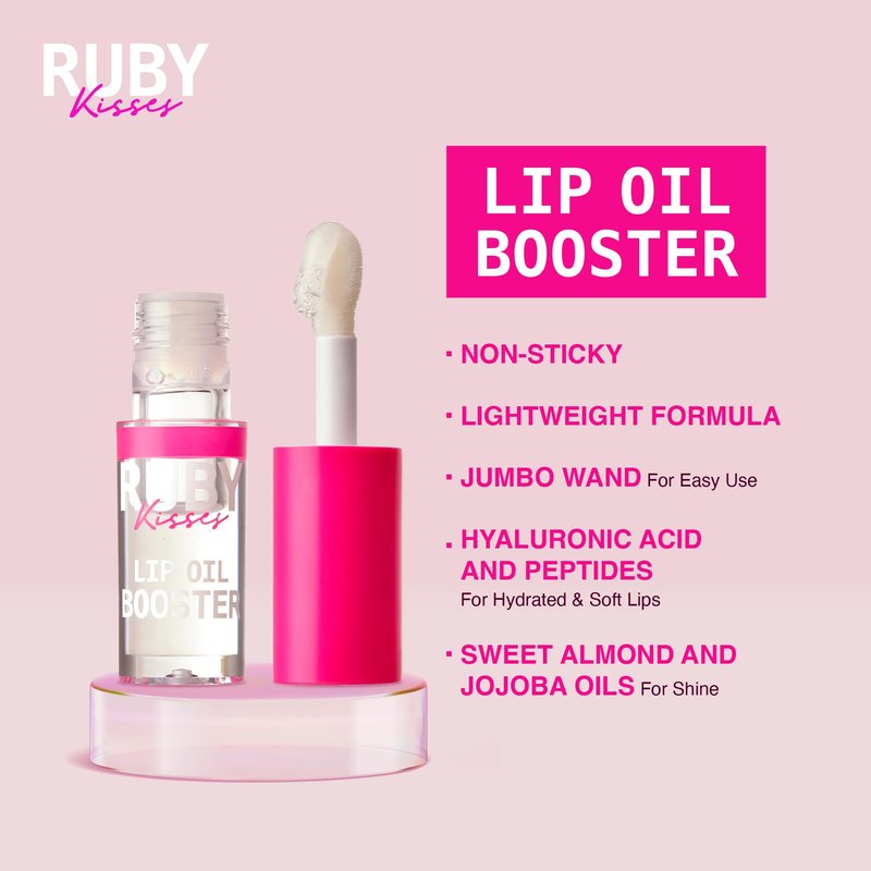 Ruby Kisses Lip Oil Booster, Hydrating Lip Gloss with Nourishing Natural Oil Blend, Jumbo Wand for Easy Application, Non-Sticky Formula (Clear)