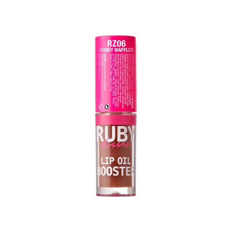Ruby Kisses Lip Oil Booster, Hydrating Lip Gloss with Nourishing Natural Oil Blend, Jumbo Wand for Easy Application, Non-Sticky Formula (Honey Waffles)