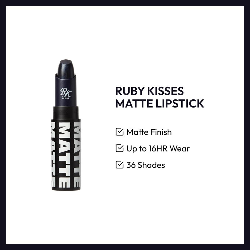 Ruby Kisses Lipstick, Matte Finish, Long-Lasting, Highly Pigmented, Smooth Apply, Full Coverage Lip Color Makeup (Black&Blue)