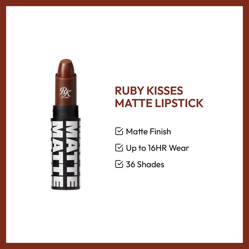 Ruby Kisses Lipstick, Matte Finish, Long-Lasting, Highly Pigmented, Smooth Apply, Full Coverage Lip Color Makeup (Espresso)