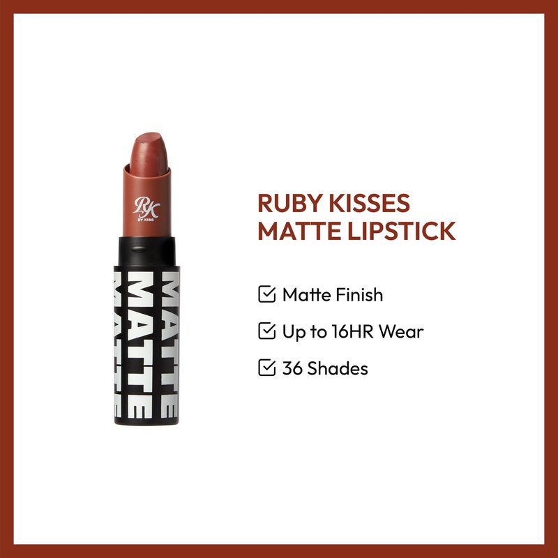 Ruby Kisses Lipstick, Matte Finish, Long-Lasting, Highly Pigmented, Smooth Apply, Full Coverage Lip Color Makeup (Rosy Brown)