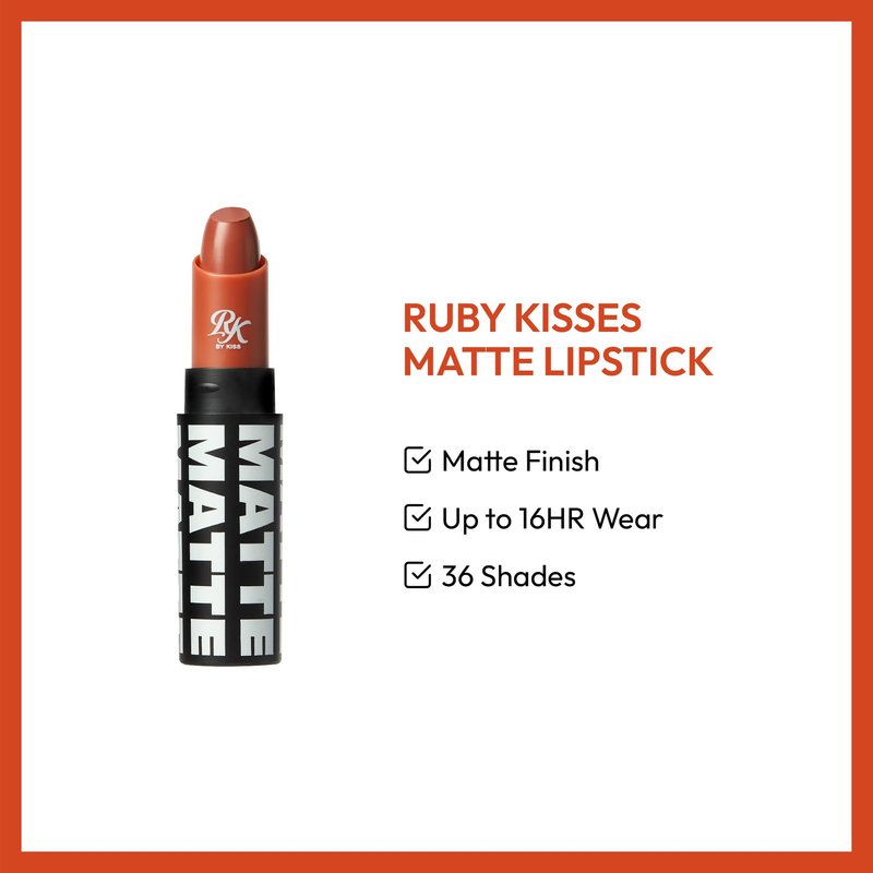 Ruby Kisses Lipstick, Matte Finish, Long-Lasting, Highly Pigmented, Smooth Apply, Full Coverage Lip Color Makeup (Warm Sienna)
