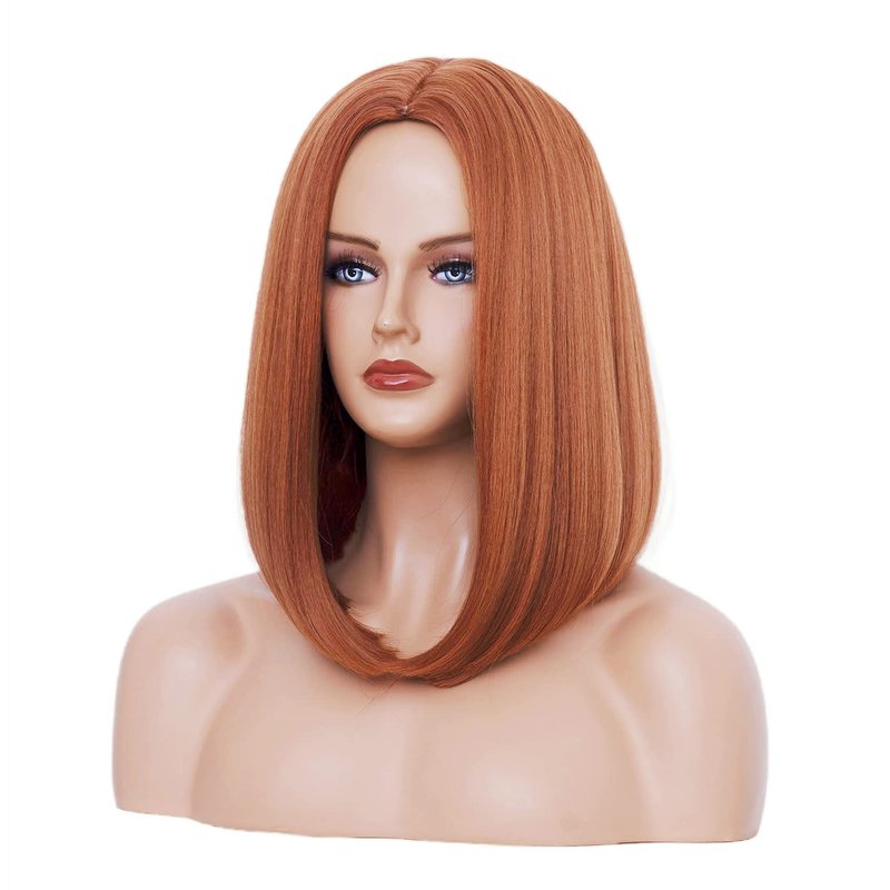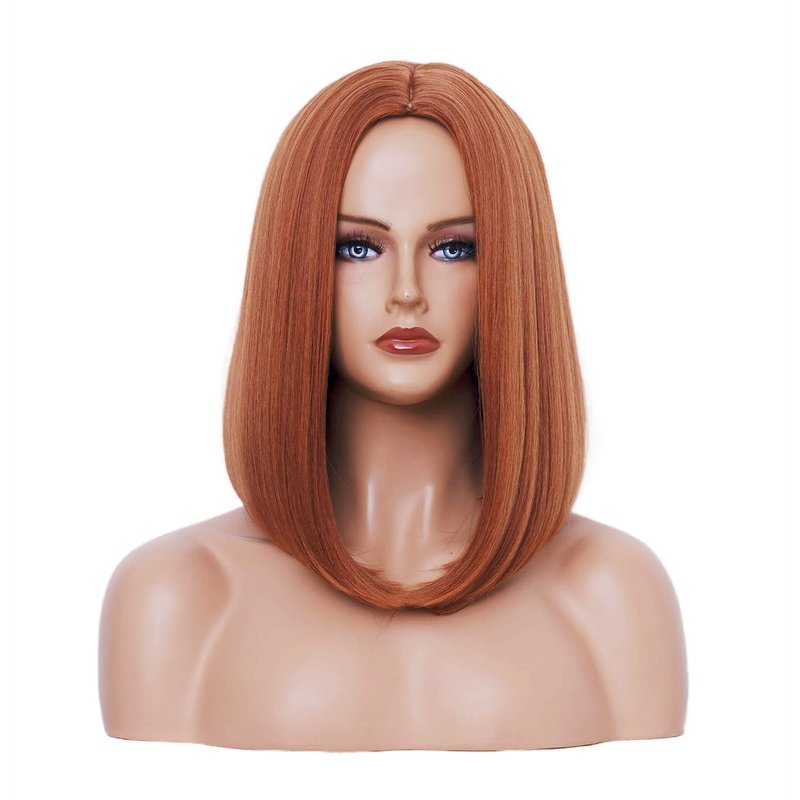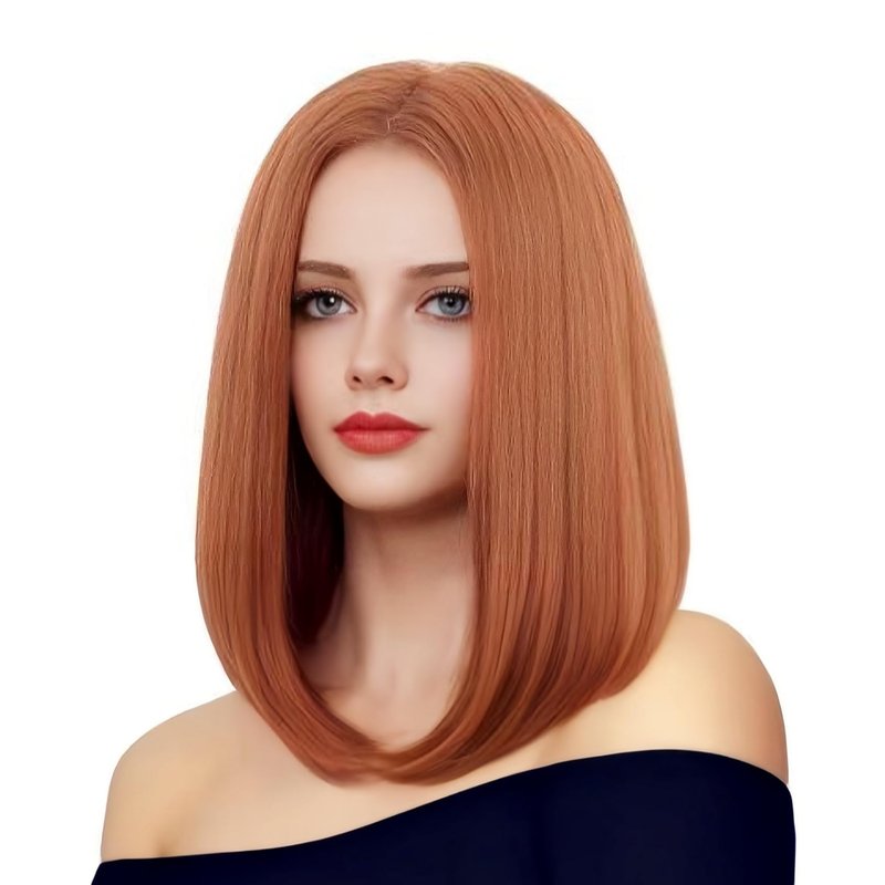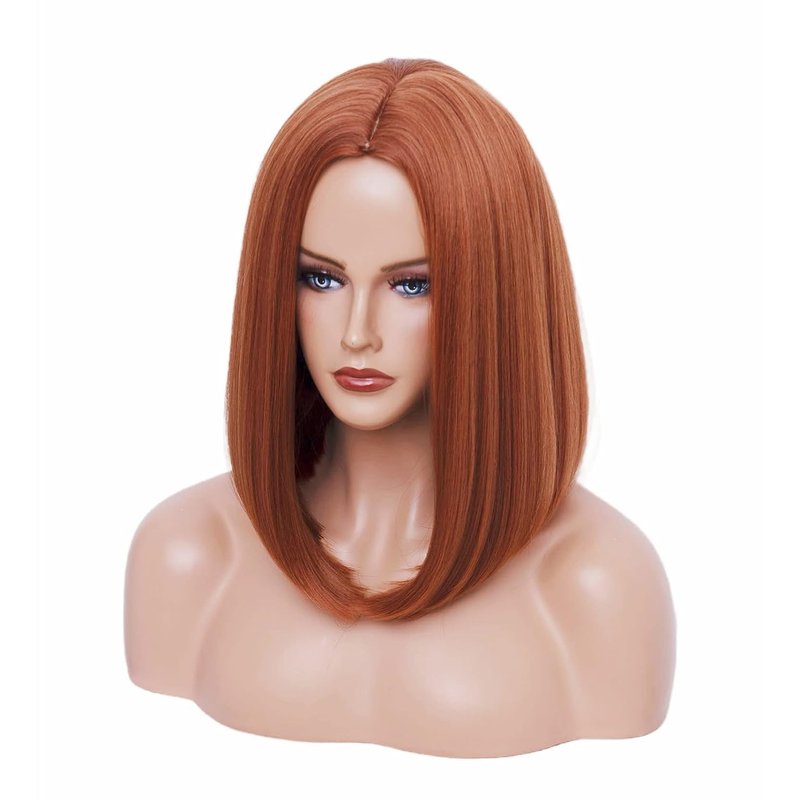 Rugelyss Copper Red Auburn Bob Wigs for Women, 14 Inches Ginger Wig with Middle Part Synthetic Hair Wig for Daily Party or Cosplay