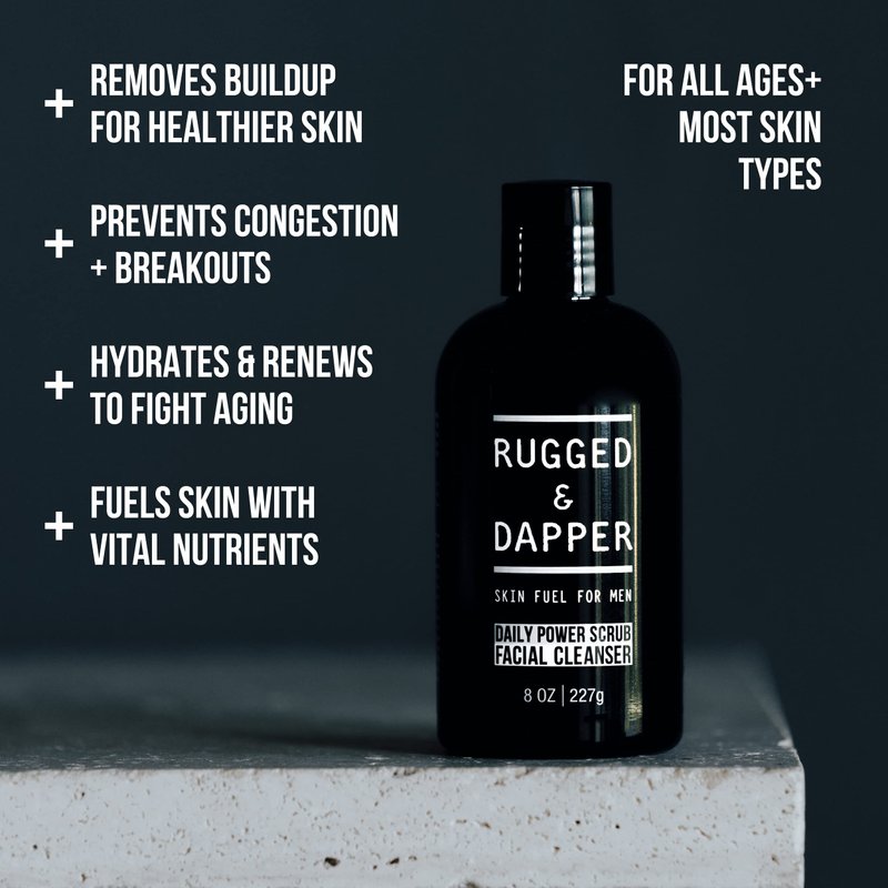 RUGGED & DAPPER Daily Power Scrub | 8 oz | Premium Exfoliating Mens Face Wash | Deep Cleans + Prevents Breakouts | Face Wash Men's | Natural Ingredients | Made in USA