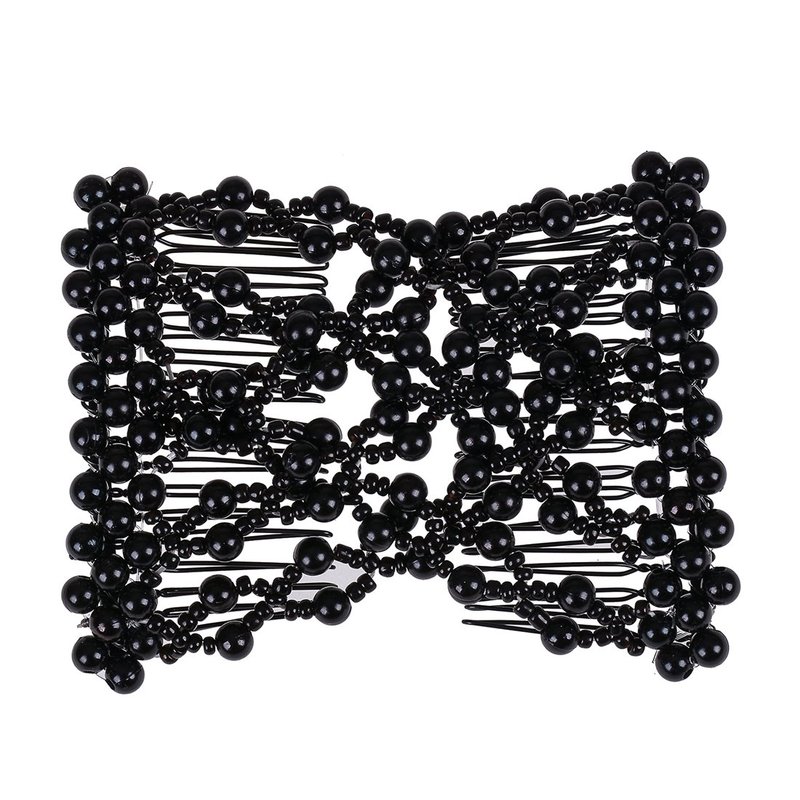Ruihfas Delicate Women Girls Easy Stretch Pearls Combs Beaded Hair Comb Jewelry Double Clips (Black)