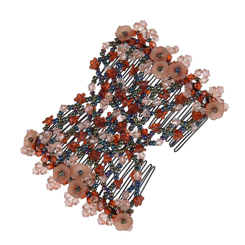 Ruihfas Vintage Beaded Crystal Flower Easy Stretchy Double Clips Hair Comb Hair Accessories (Coffee)