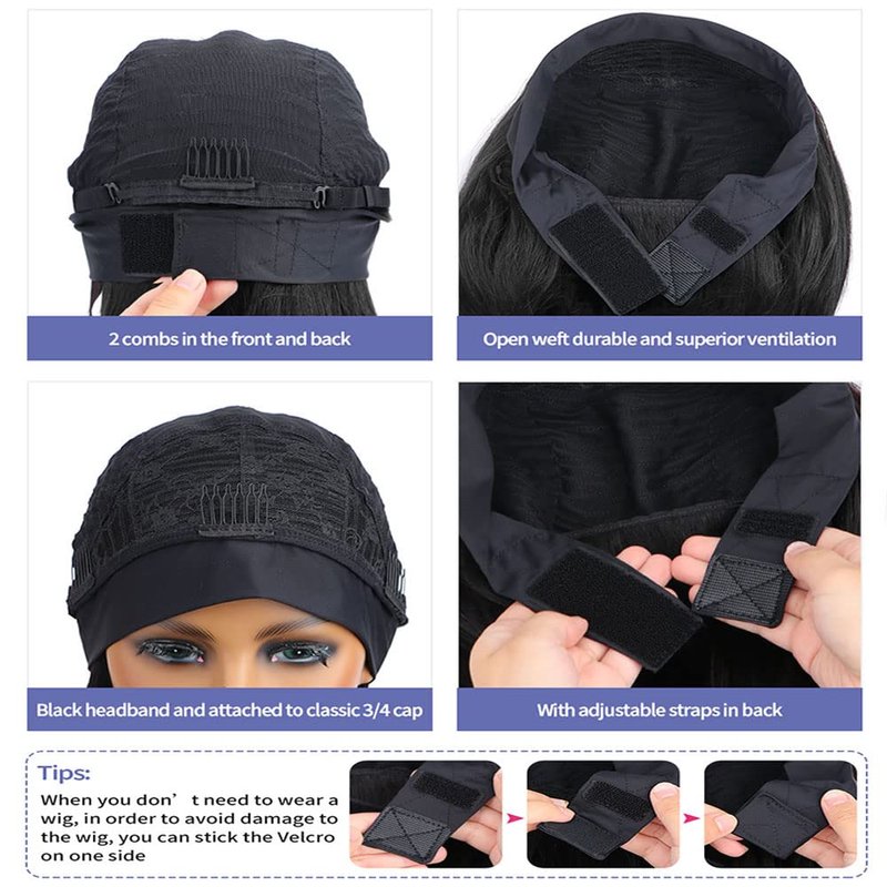 - 💖Wavy Headband Wig Detail: straight bob Headband wig use the top quality heat resistant synthetic fiber with high quality ice silk headband, Weight: About 200g, velcro snapping inside the cap, can be resized according to the head.