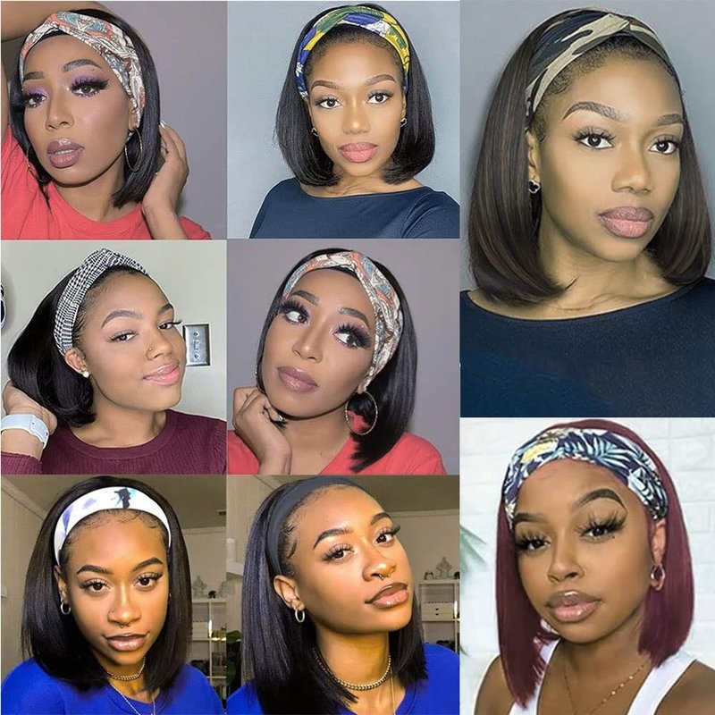 - 💖HAIR Material :Silky & Soft.This short straight bob Headband Wig is made of 100% high quality high temperature fiber with Easy-to-wear black headband.Super soft and very skin friendly.(1pcs free headband gift and a free wig cap )
