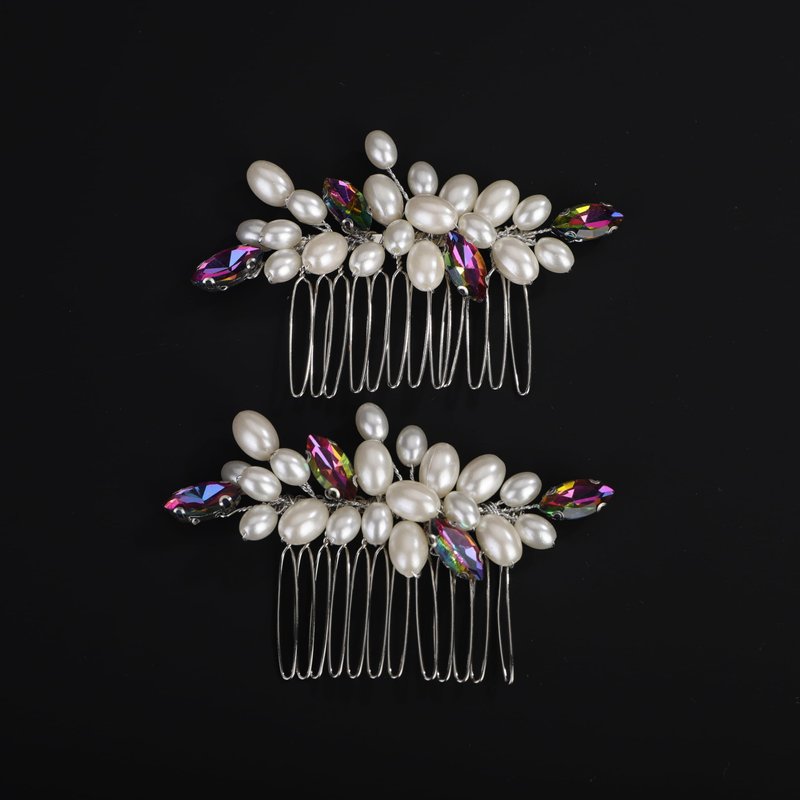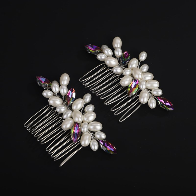 Rumtock 2pcs Laser Rhinestones Beads Hair Comb Set Wedding Bridal Silver Hair Piece Women Handmade Jewelry (Laser)