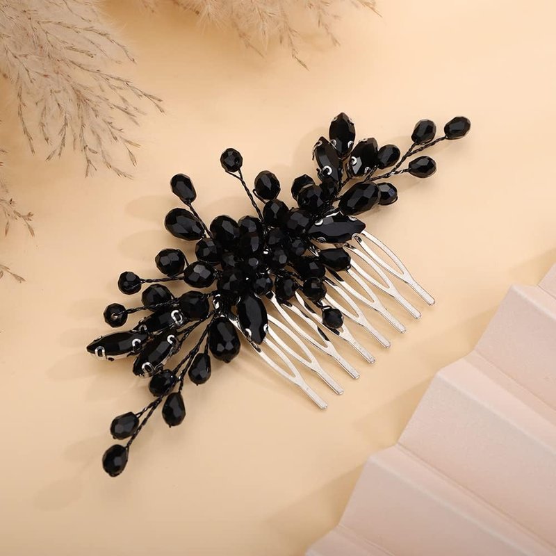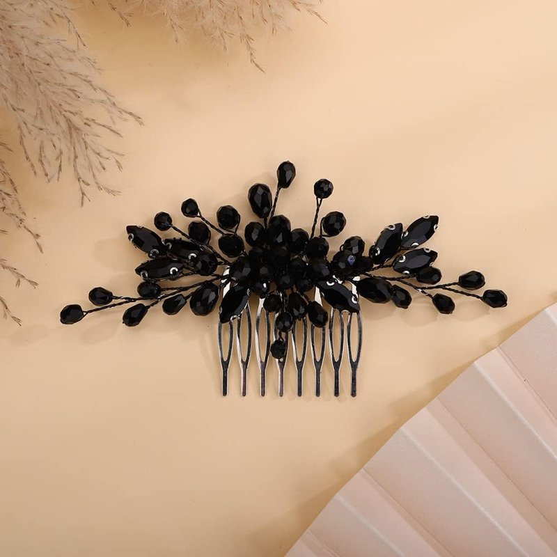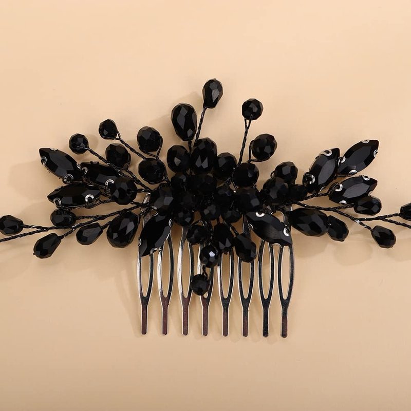 Rumtock Black Rhinestones Beads Black Hair Comb Side Headpiece for Wedding Brides Women Girls Handmade Hair Accessories (Black)