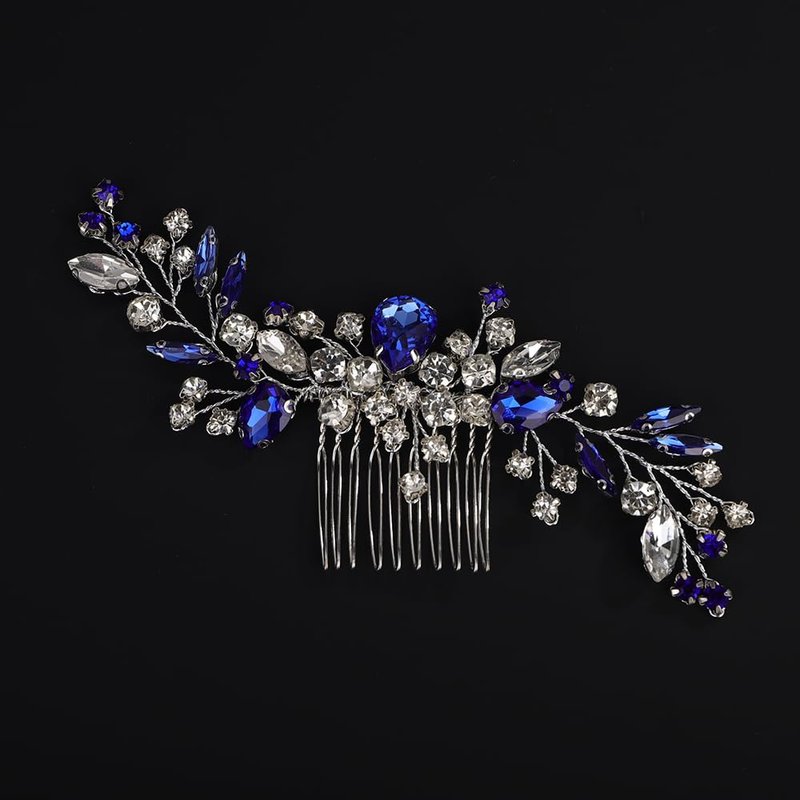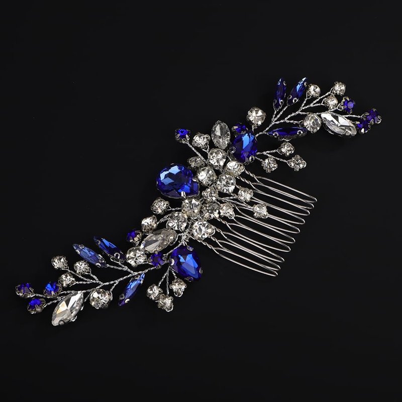 Rumtock Blue Hair Comb with Rhinestones Beads Silver Hair Piece Side Headpiece for Wedding Brides (Blue)