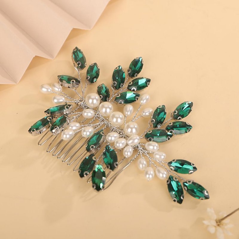 Rumtock Boho Green Crystal Hair Comb Silver Hair Accessories for Special Occasion Wedding Prom Handmade Jewelry (Green)