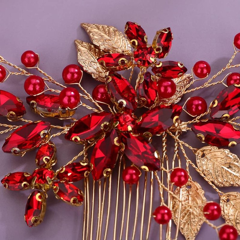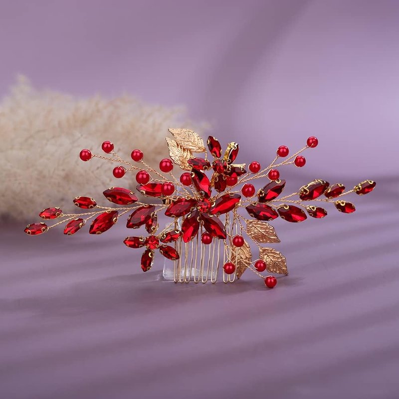 Rumtock Boho Red Leaves Gold Hair Comb for Women Girls Wedding Bridal Special Occasion Hair Jewelry Handmade Headpiece (Red)