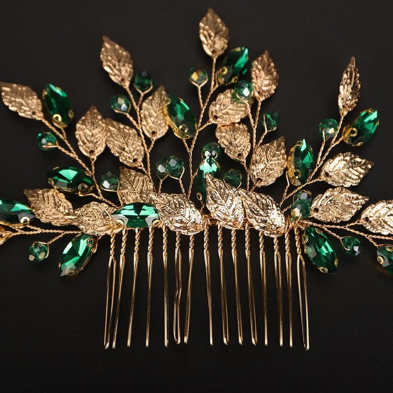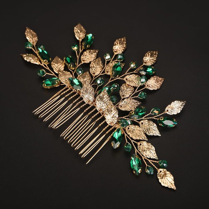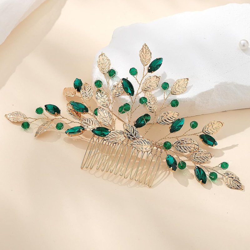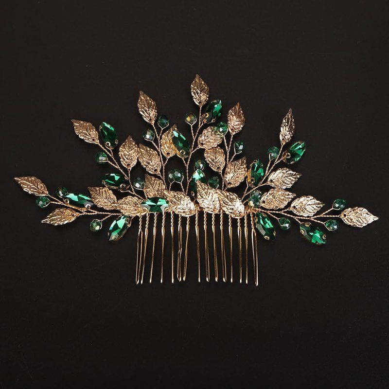 Rumtock Green Crystal Gold Leaf Hair Comb for Women Girls Wedding Bridal Hair Accessories