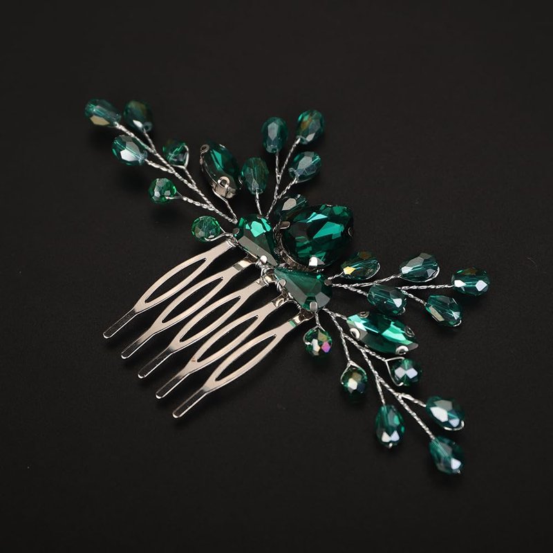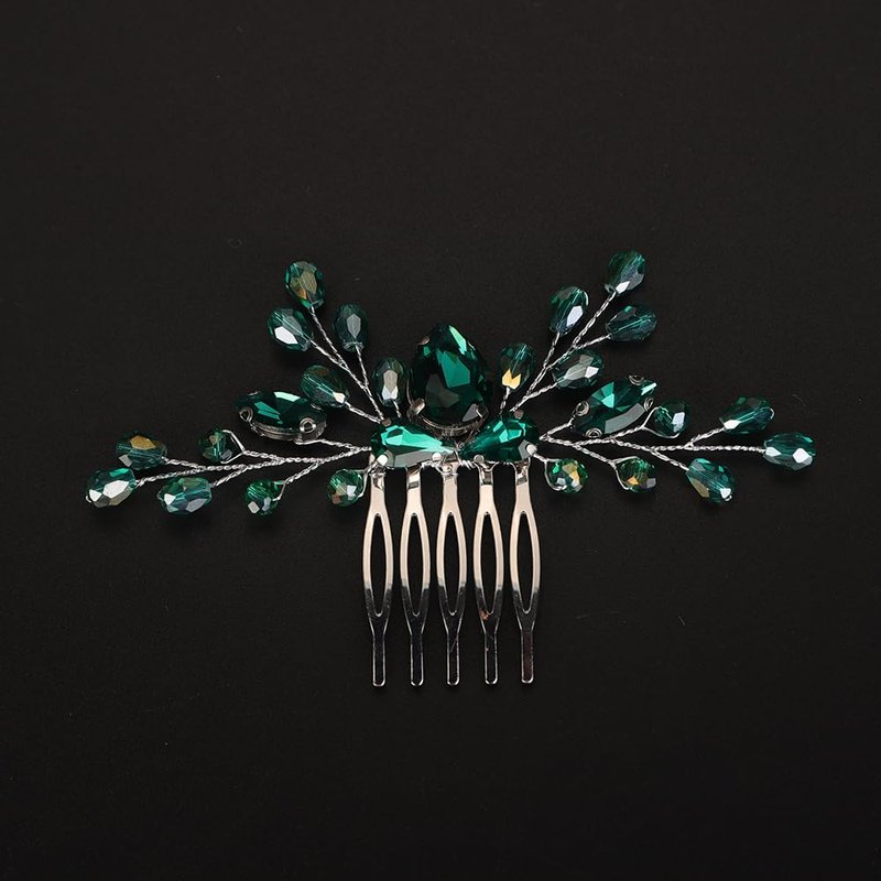 Rumtock Green Crystals Hair Comb Small Cute Headpiece for Women Girls Wedding Bridal Handmade Hair Accessories
