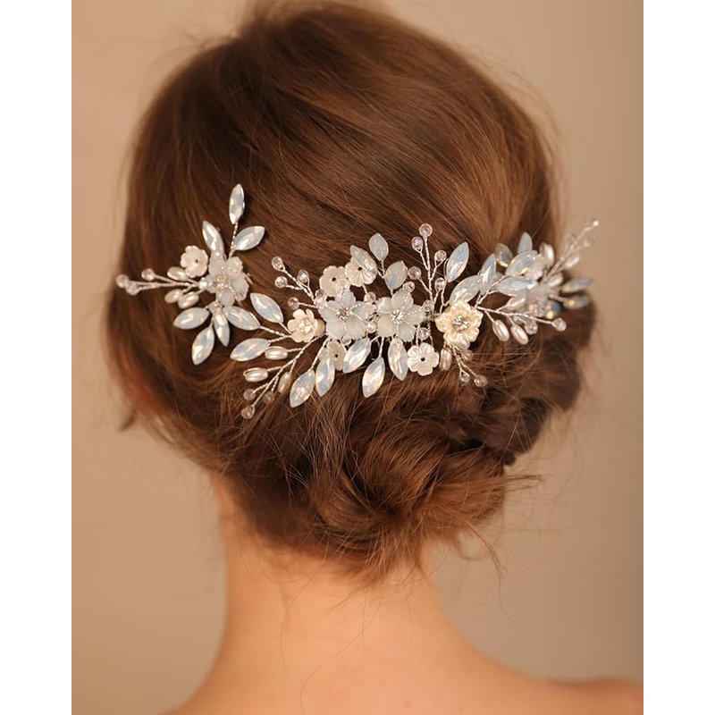 Rumtock Opal Crystal Beads Silver Hair Comb Hair Pins Set for Wedding Brides Women Banquet Dancing Ball Handmade Hair Piece (Silver)
