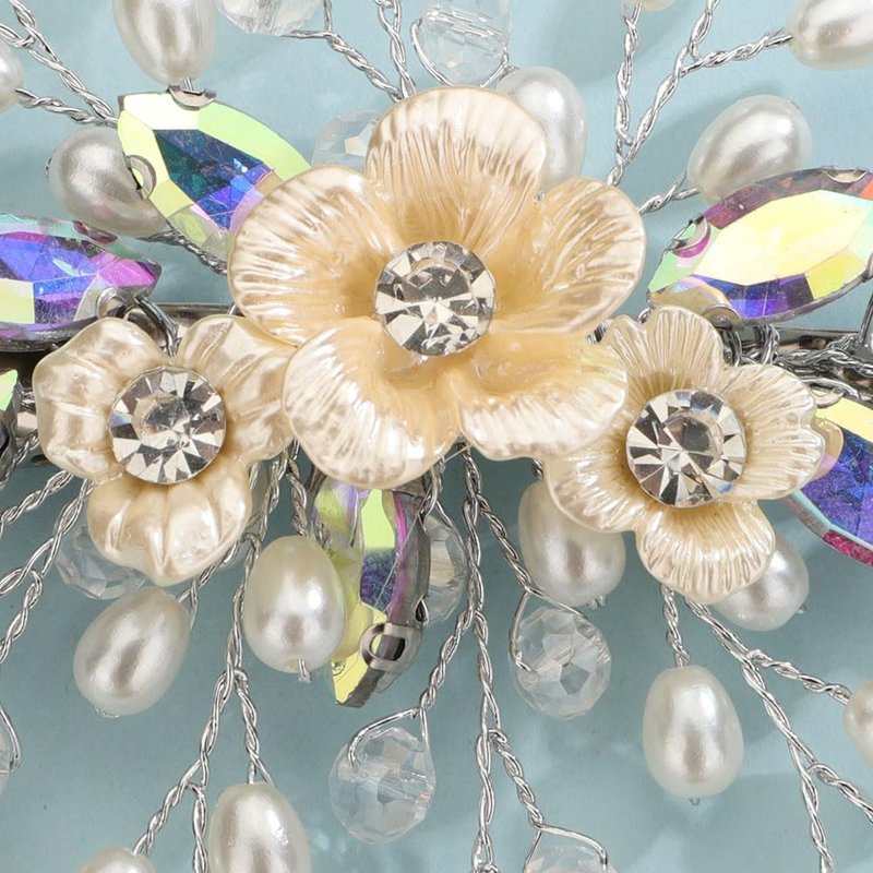 Rumtock Pearl and Flower Gold Hair Clip for Wedding Brides Bridesmaid Flower Girls Handmade Hair Piece (Gold)