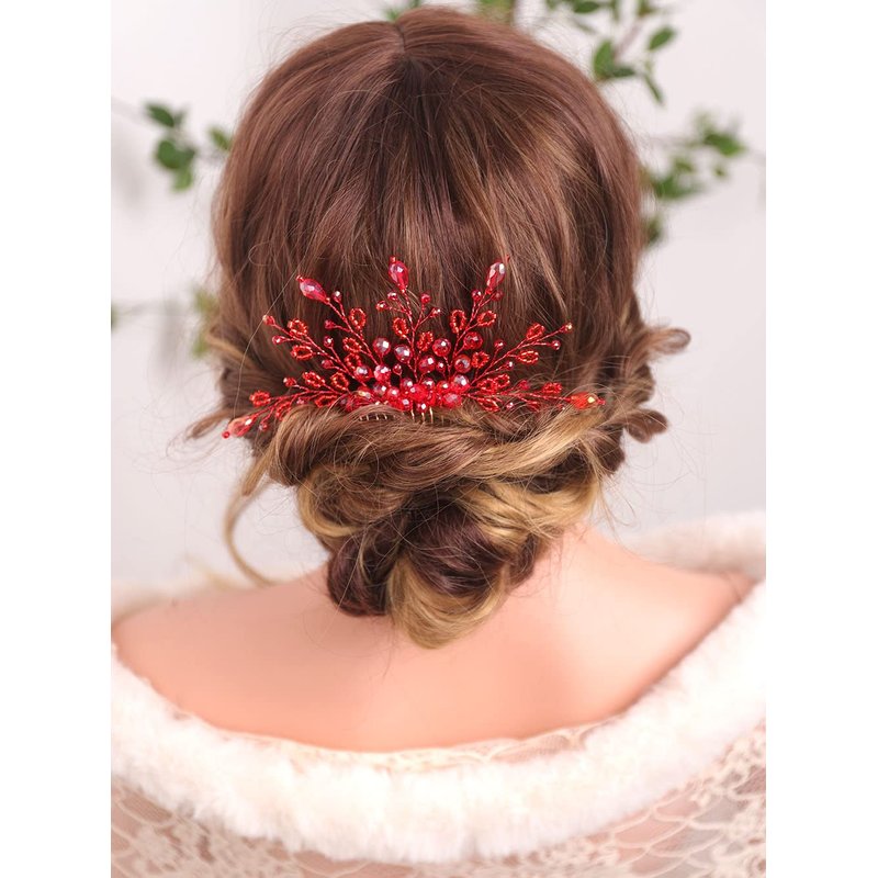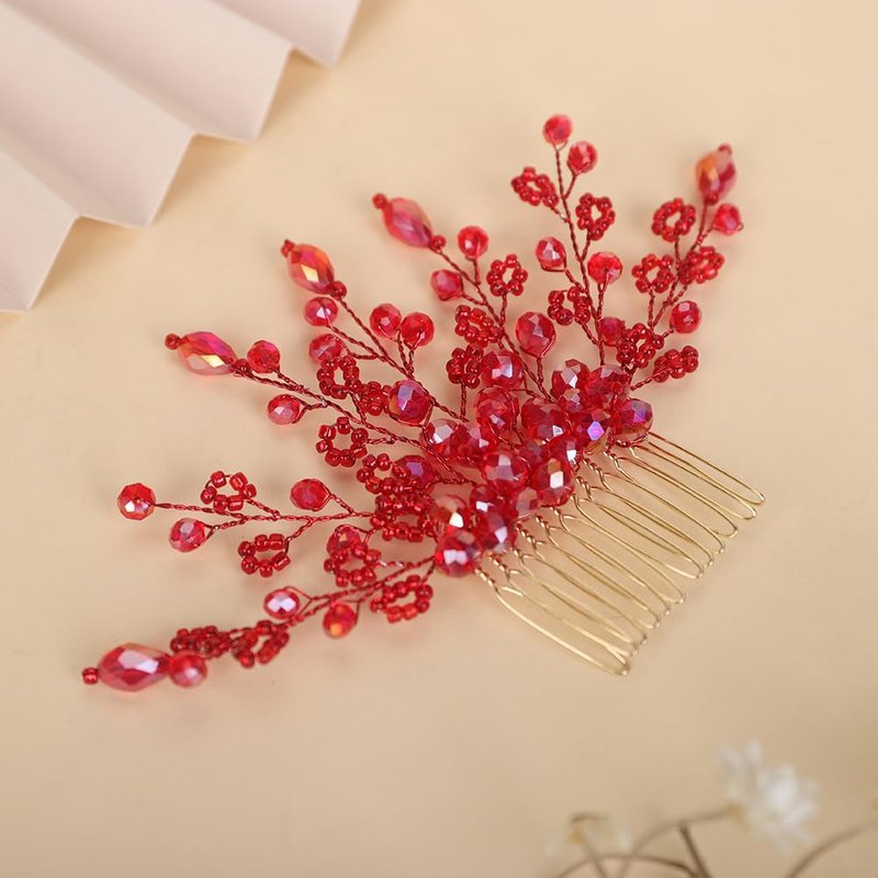 Rumtock Red Crystal Beads Rhinestones Hair Comb Red Rhinestones Hair Accessories for Wedding Brides Women Girls Dancing Ball Jewelry
