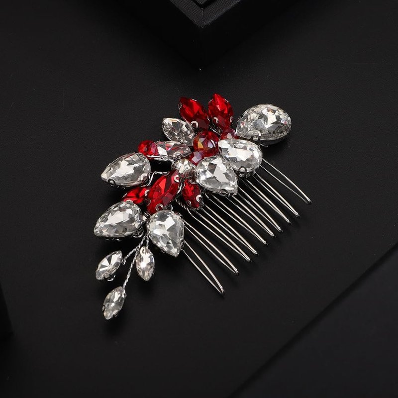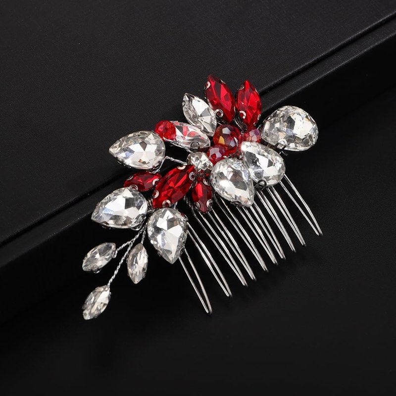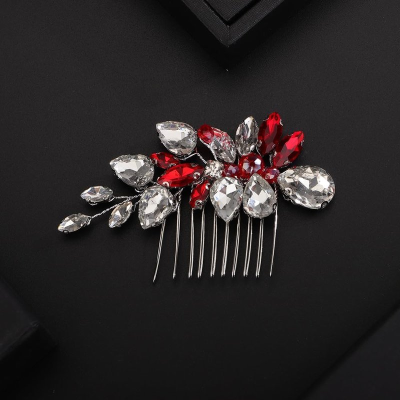 Rumtock Red Rhinestones Ball Beads Side Hair Comb Wedding Bridal Handmade Hair Accessories Special Occasion Jewelry (Red)