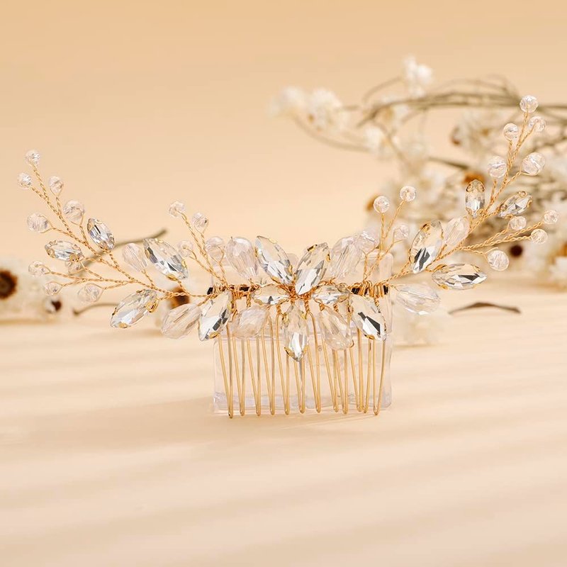Rumtock Rhinestones Beads Long Gold Hair Comb for Wedding Brides Women Girls Handmade Hair Piece Vintage Handmade Jewelry (Gold)
