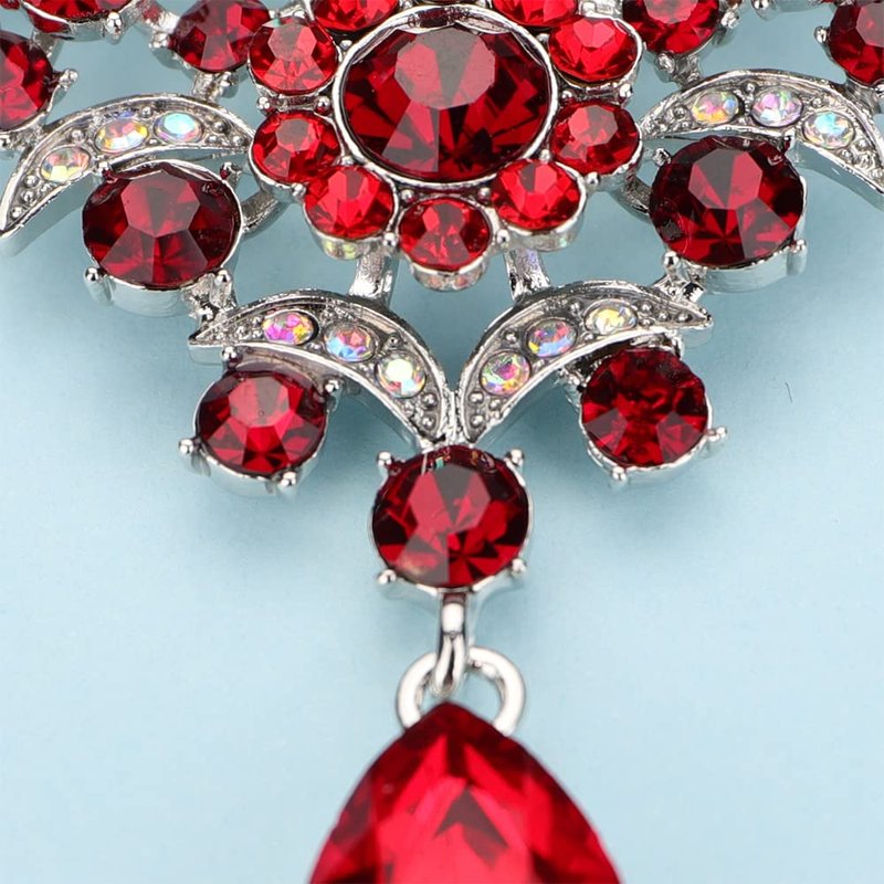 Rumtock Ruby Red Rhinestones Elegant Silver Bro...
