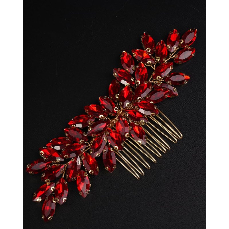 Rumtock Ruby Red Rhinestones Gold Hair Comb for Wedding Brides Women Girls Side Headpiece Hair Styling Jewelry (Red)