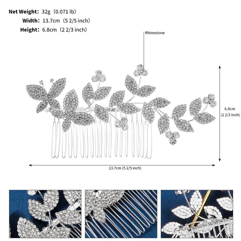 Rumtock Sparkle Butterfly Leaves Rhinestones Silver Hair Comb for Wedding Brides Vintage Boho Aolly Crystal Hair Piece Jewelry